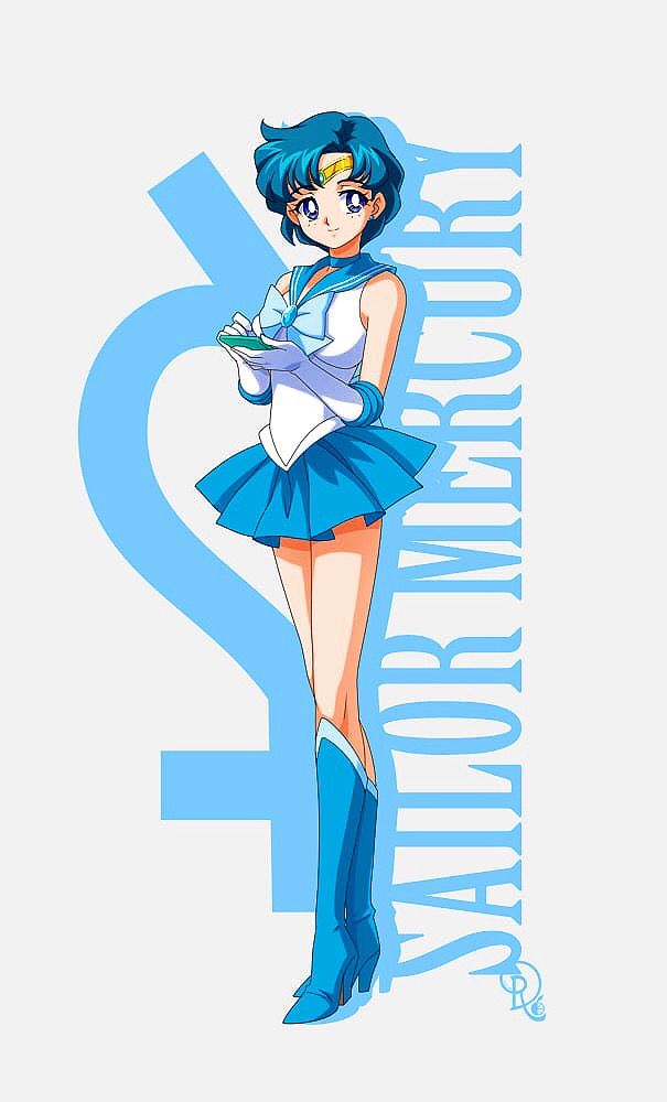 Ami Mizuno (civilian) Sailor Mercury In her Guardian form, Ami's outfit features a white leotard with a blue sailor collar, a sky blue front and back bow, and a pleated skirt. She wears knee-high blue boots, elbow-length gloves with blue trims, and a golden tiara with a blue gem. Her sleeveless style and high-tech visor (Mercury Goggles) give her a tactical edge in battle. She even has a built-in comm system through her earrings! Super Sailor Mercury Ami's collar simplifies, the gem on her bow becomes a heart, and she gains translucent shoulder pads and a larger, flowy back bow. Her choker now features a golden star — showing her evolving power. Eternal Sailor Mercury In her final Guardian form, Ami gets puffy, translucent sleeves, layered blue skirts, and long gloves with v-shaped cuffs. Her tiara gem turns into a star, and her boots shift to white with star accents. Princess Mercury In her royal form, Ami wears a flowing blue gown with golden details and matching starry jewelry. Elegant and regal, Princess Mercury reflects Ami's inner strength and calm wisdom as a ruler of her own world. phrases